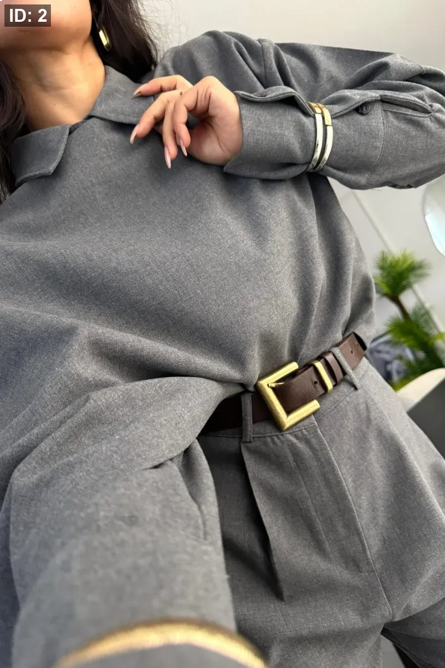 طقم كتان كاجوال مع حزام