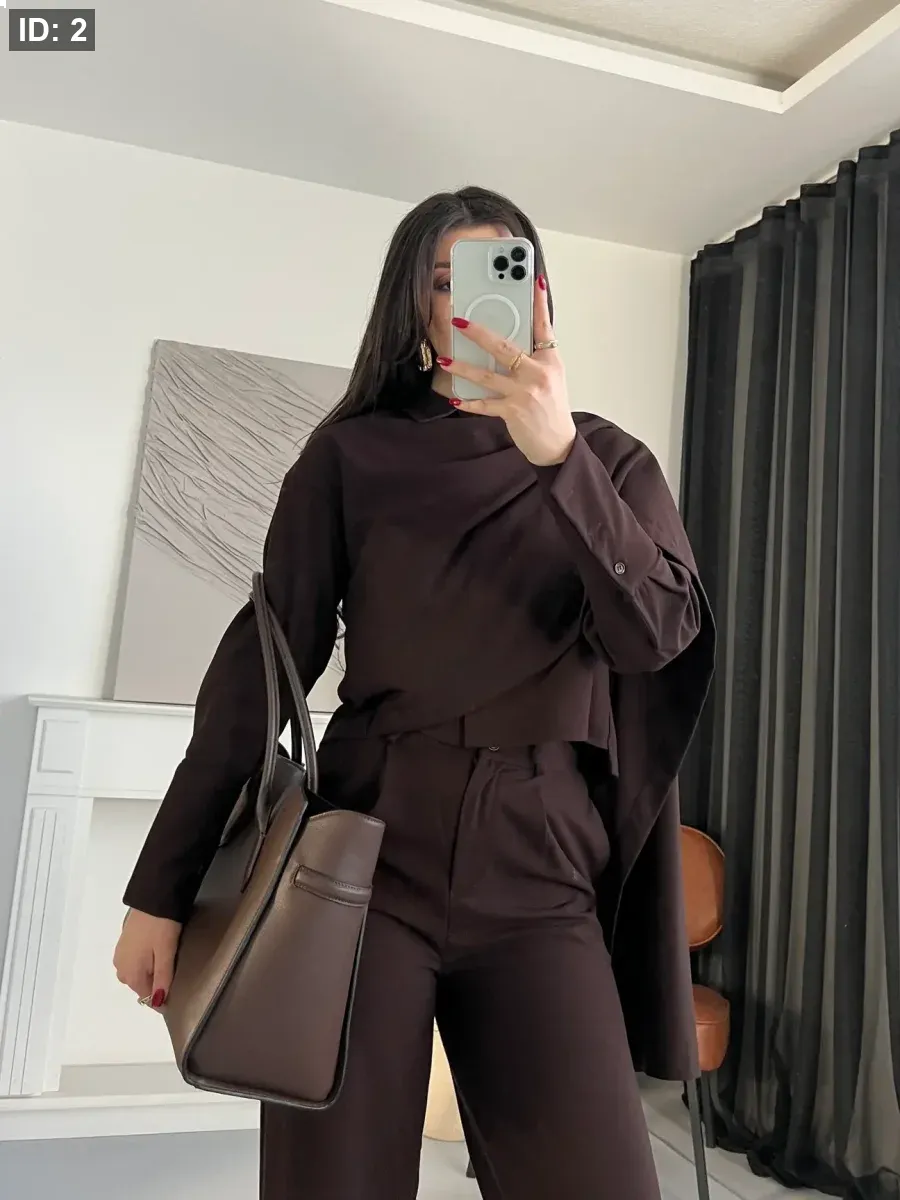 طقم بنطلون مع قميص وسكارف