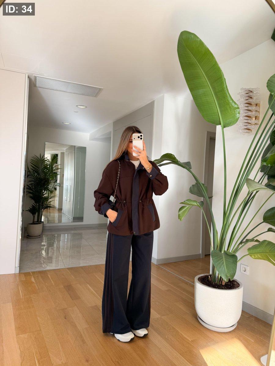 طول البلوزة: 70 سم طول البنطلون : 108 سم (مقاس S)، محيط الخصر: 32 سم. يوجد فرق حوالي 1 سم بين المقاسات