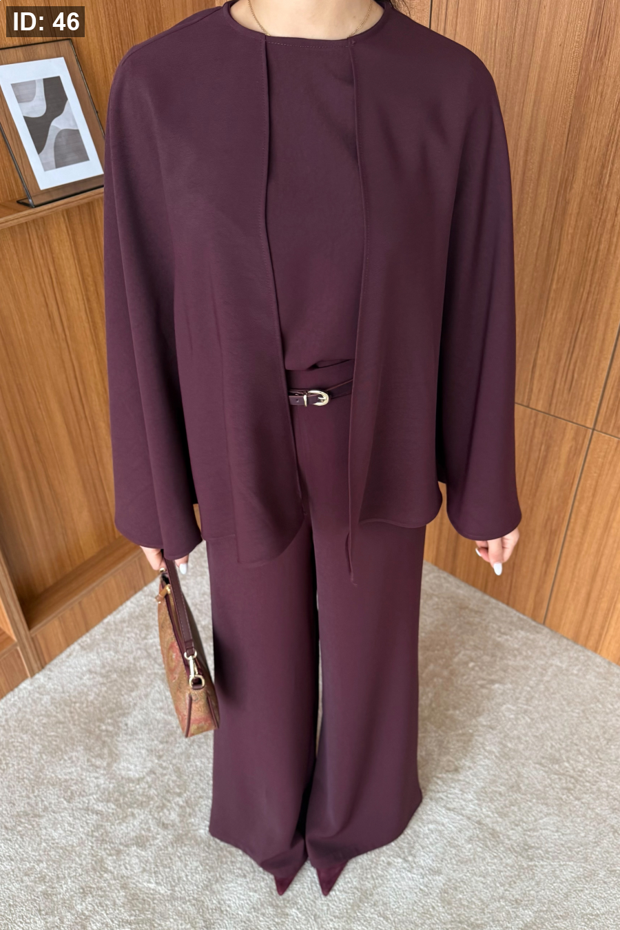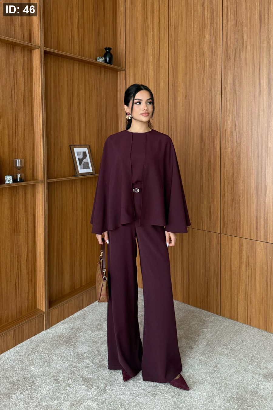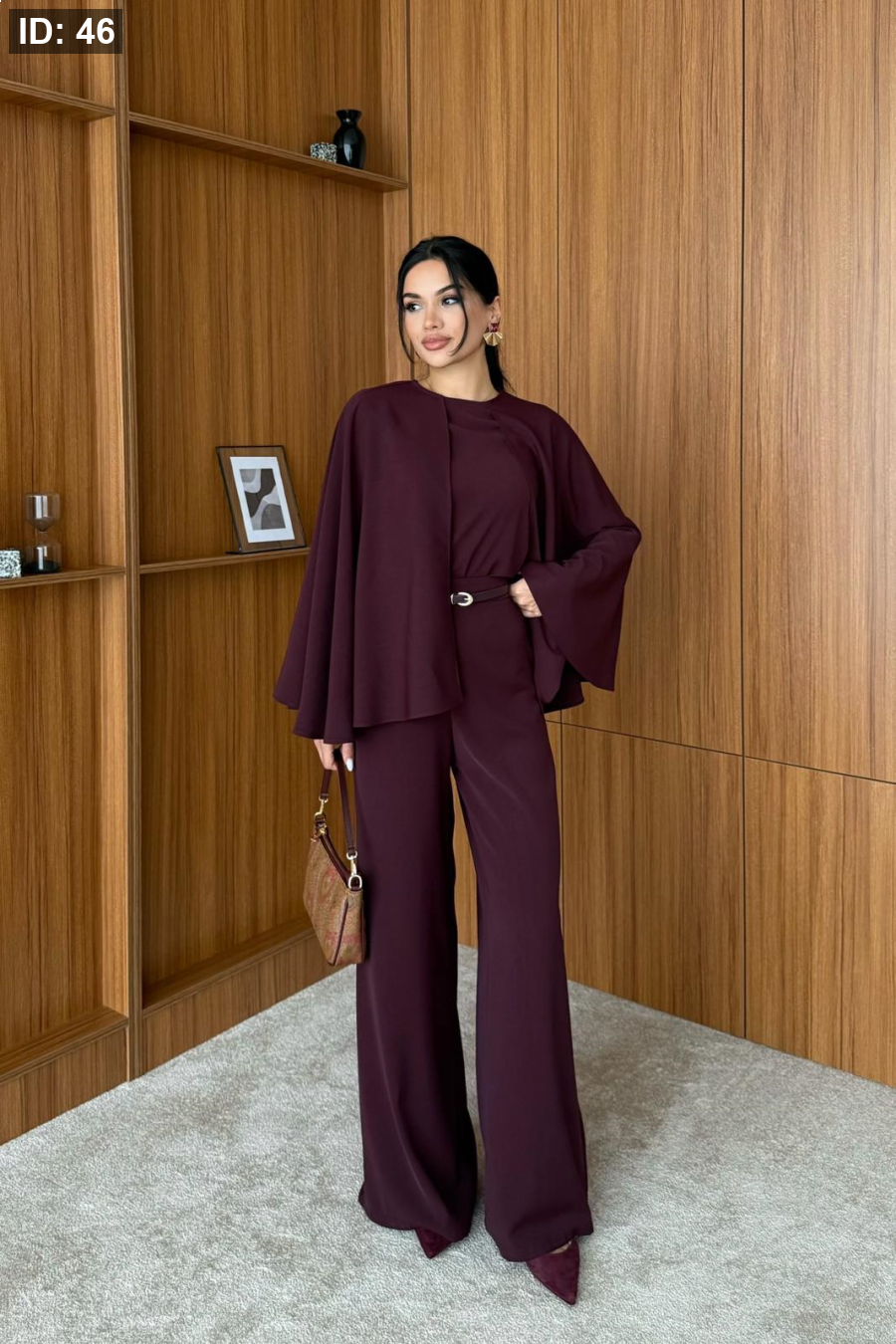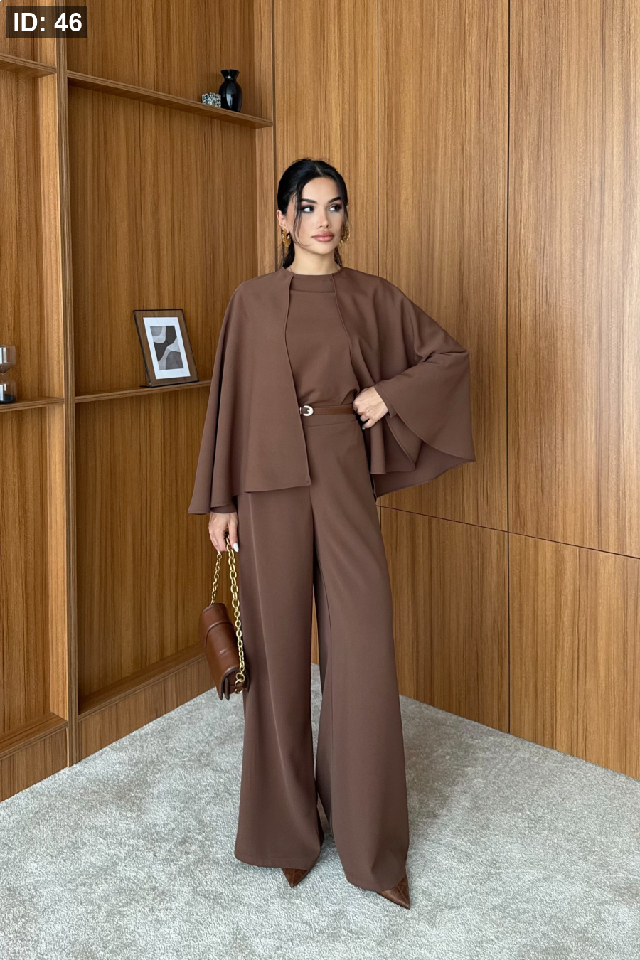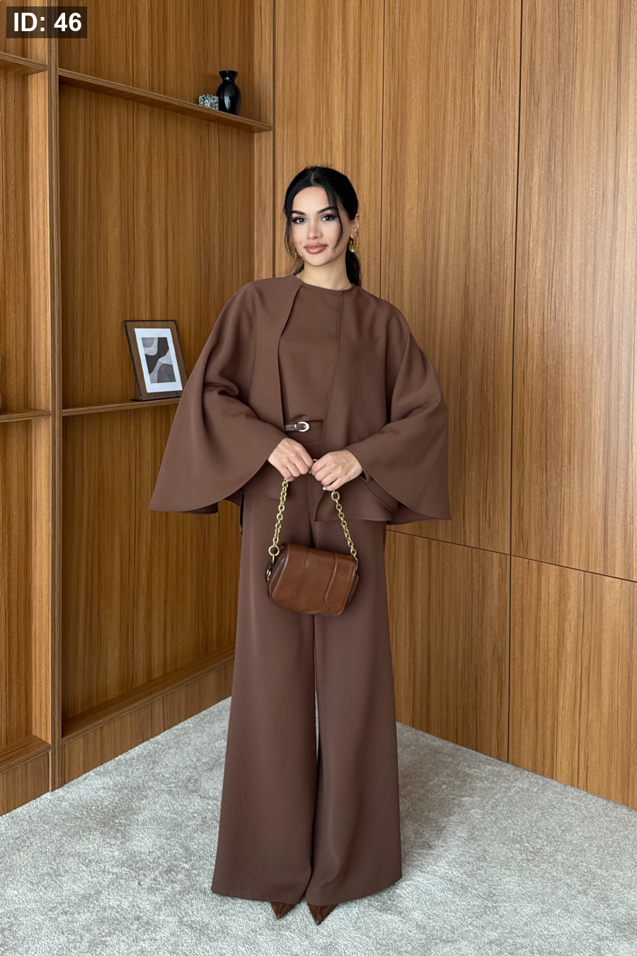 يتميز بتصميمالبنطال مزود بخصر مطاطي. يبلغ طول الجزء العلوي 66 سم من الأمام و74 سم من الخلف، بينما يبلغ طول البنطال 112 سم. يبلغ طول العارضة 168 سم، ووزنها 57 كجم، وقد اختارت المقاس S.