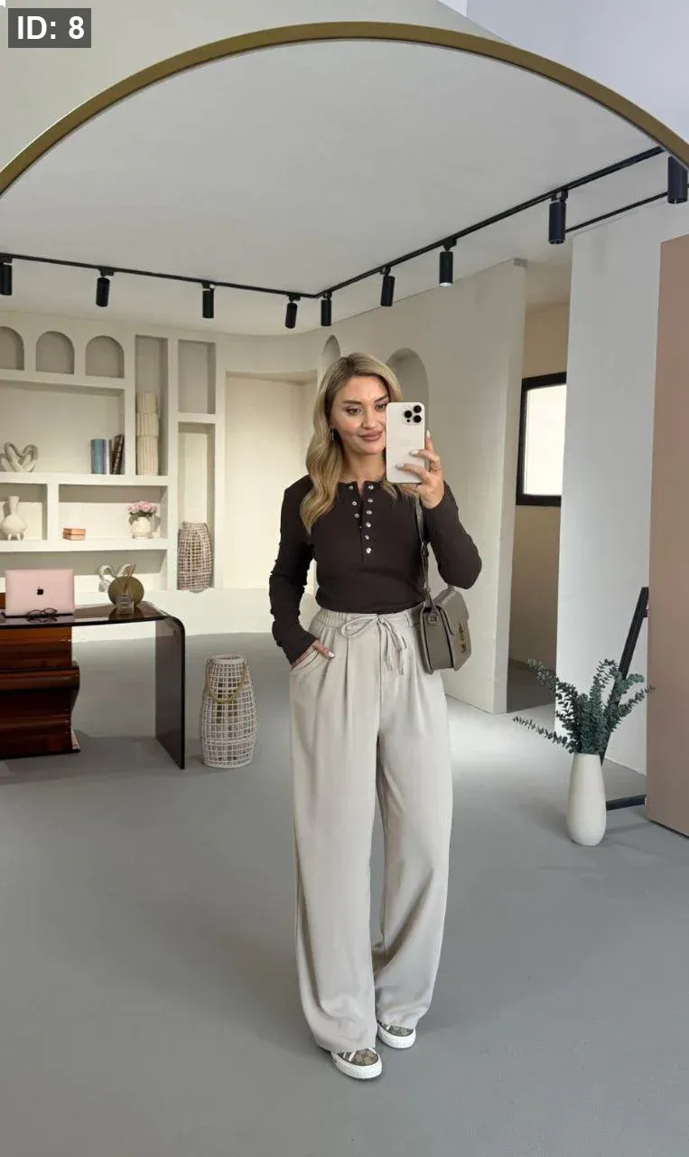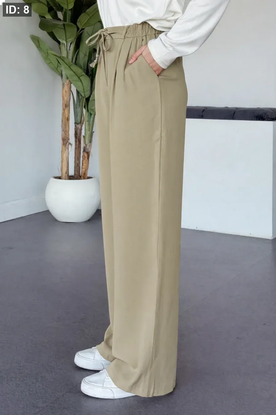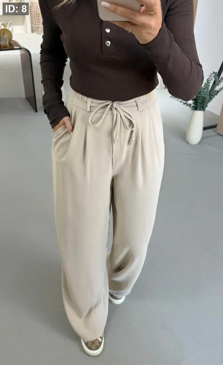 بنطلون قماش خصر نصف مغيط من الخلف ( زر وسحاب من الامام) مع كامر ربط