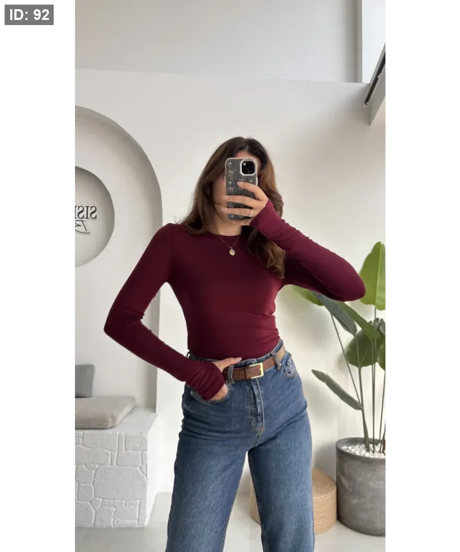بيسك اويشو سادة، معها فتحة للاصبع عند طرف الكم , فيها لايكرا